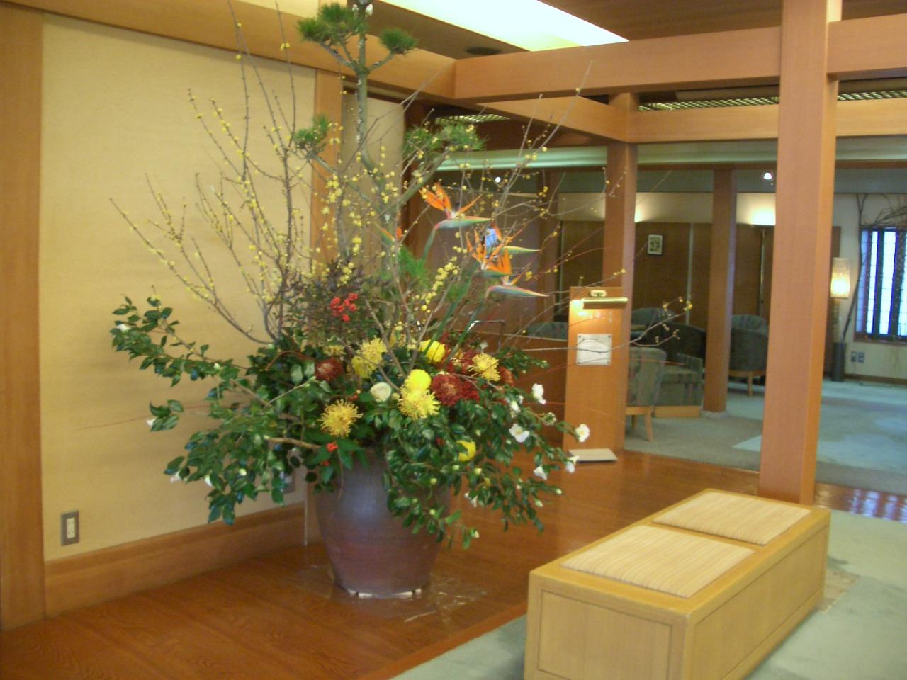 部屋までの廊下にも、新年っぽい、松を利用した飾り花がありました。