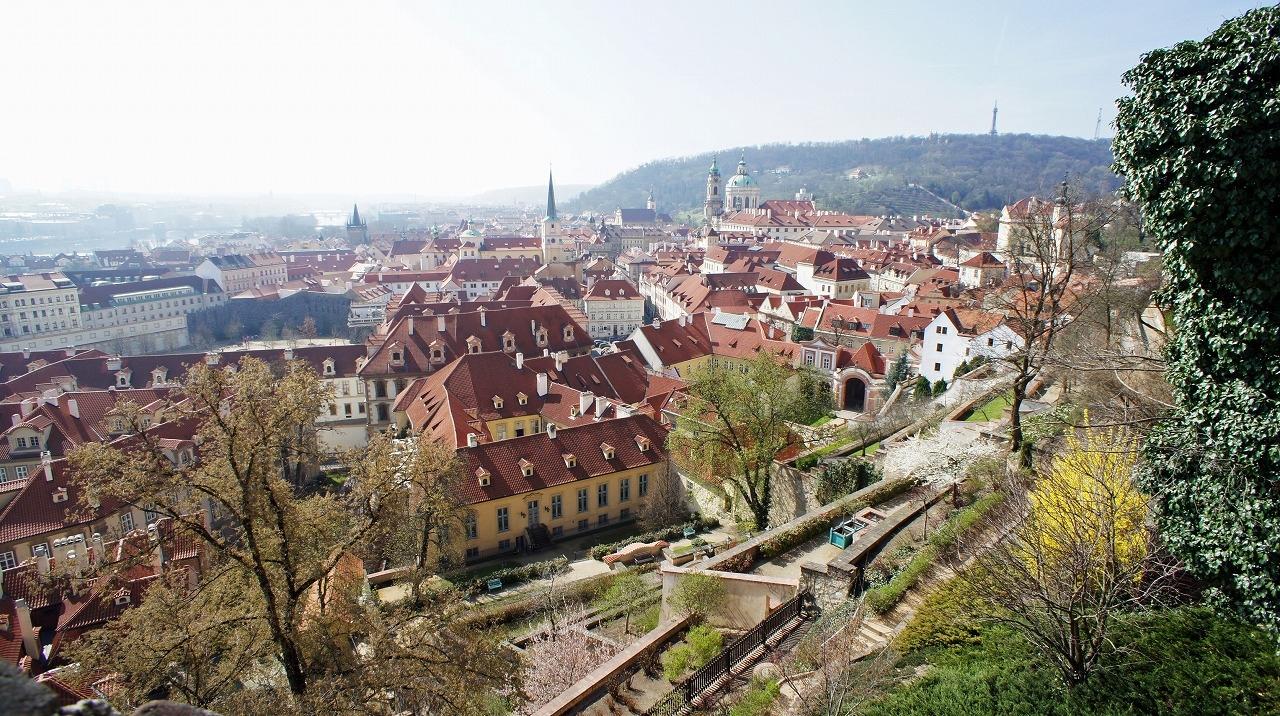 一度東門を出た広場からマラー・ストラナの城下を眺めてみます。新緑が芽生え始めたタイミングで綺麗なのと葉が茂っていないので視界を妨げなくて良かったです。滞在した数日で一気に春が加速したように感じました。