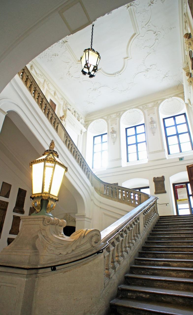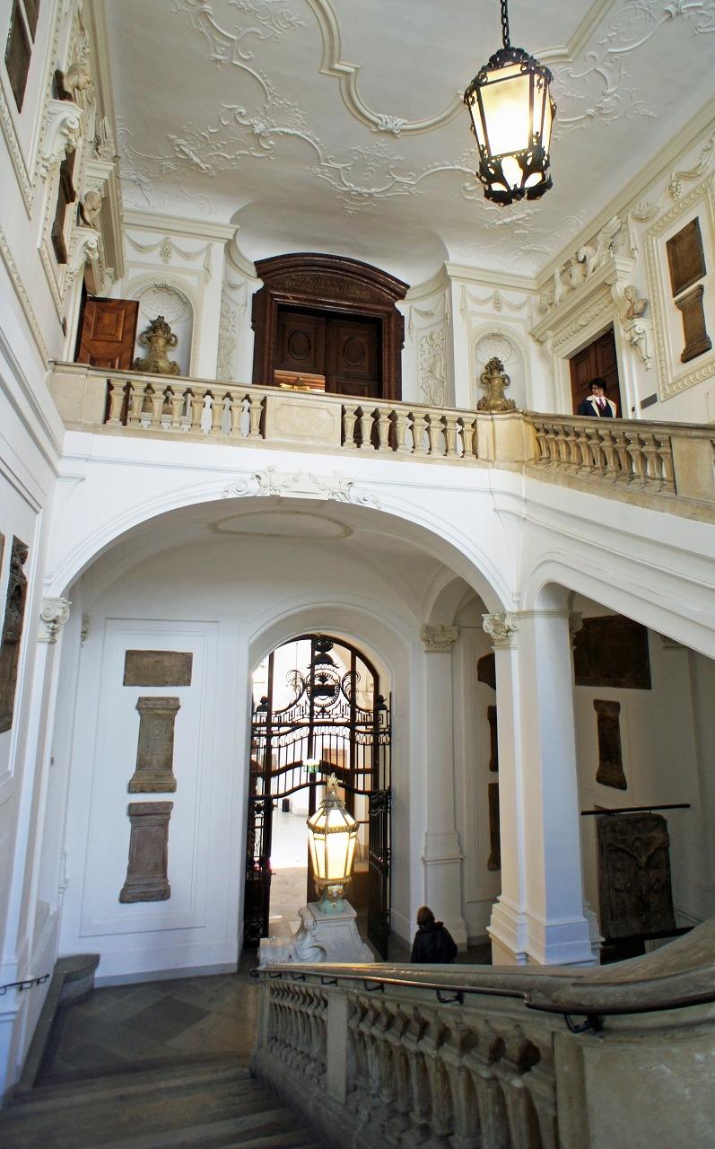 この階段ホールだけを見ているとこの先にバロックの洪水の様な図書館があるとは思えません。