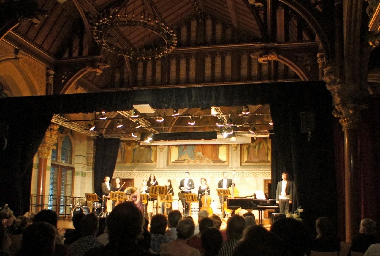 コンサート会場は高校の建物ですが、各地の大聖堂やウイーン市庁舎の建築家でもあるフリードリヒ・フォン・シュミットによって建設されました。市庁舎と同じくネオ・ゴシック様式の美しい建物です。