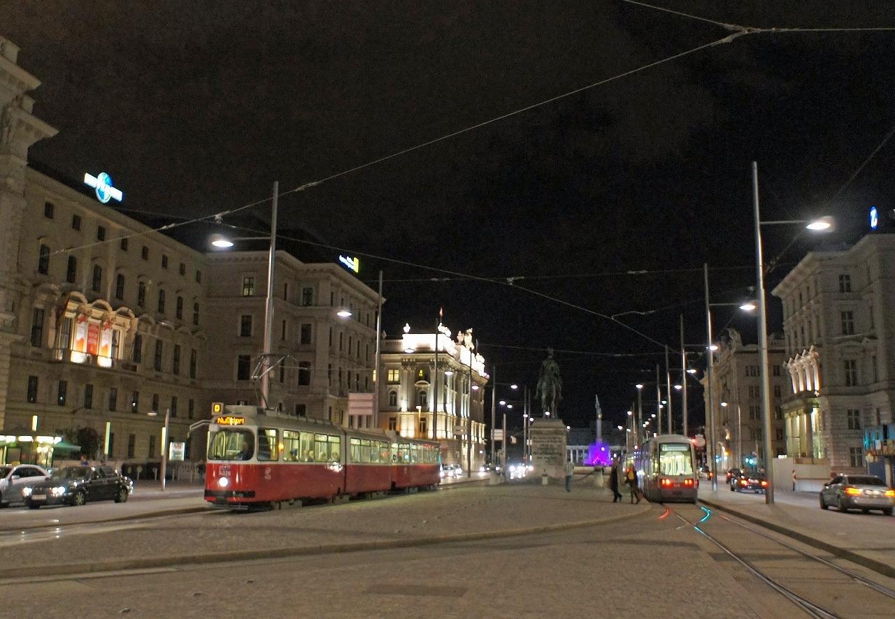 そして翌日の夕方に一度ホテルに戻って、少しおしゃれをして出掛けました。市庁舎前からトラムに乗ってリンク沿いにシュヴァルツェンベルク・プラッツまで移動します。
