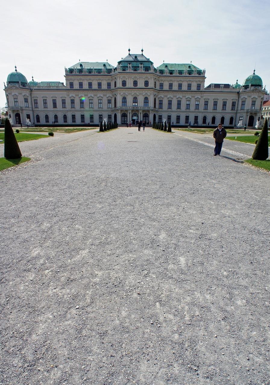 春の花が植えられたばかりのベルヴェデーレ宮殿です。ウィーンも本格的な春はこれからの様で、園丁の方々が芝生を掘り起こし花を植える準備を進めていました。南側からアプローチするので、午前中は太陽光線が綺麗に当たります。それもここを先に見学することにした理由です。