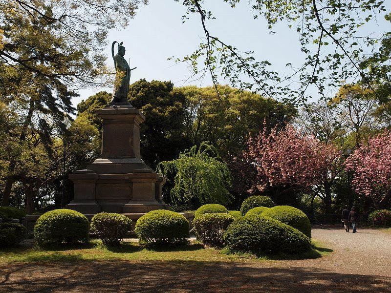 お茶室が 庭園が 記念碑(彰忠碑)が見えるが