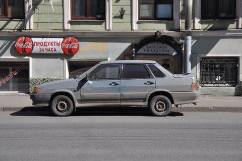 ほとんどが新しい日本車かドイツ車。 たまにロシア産の車が走っています。