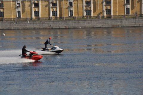 小ネヴァ川でジェットスキーを楽しむ人たち。 ロシアも裕福になりました。