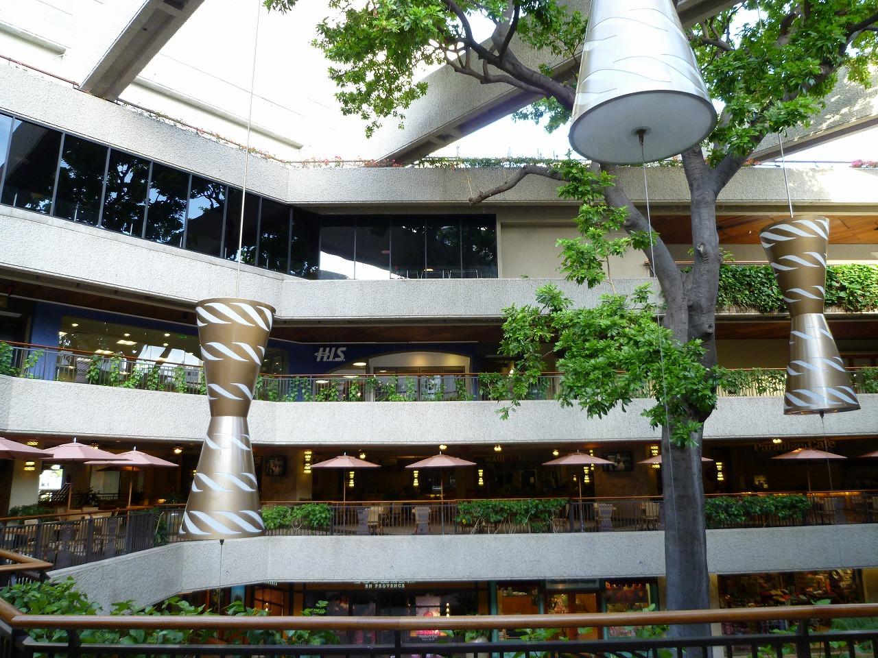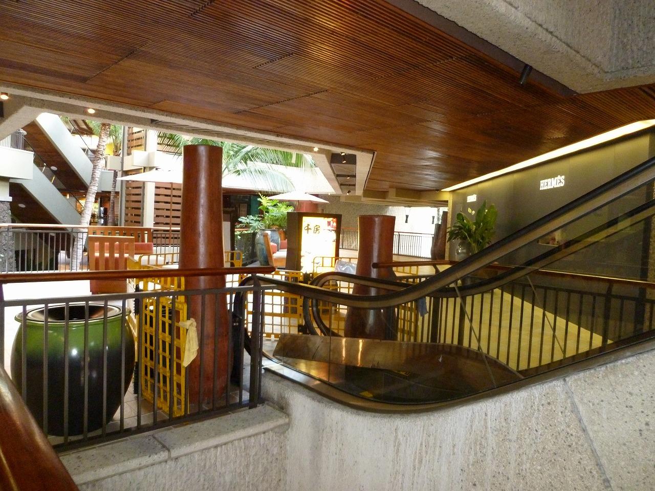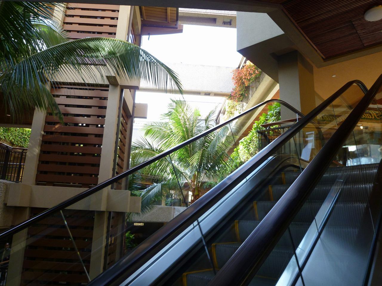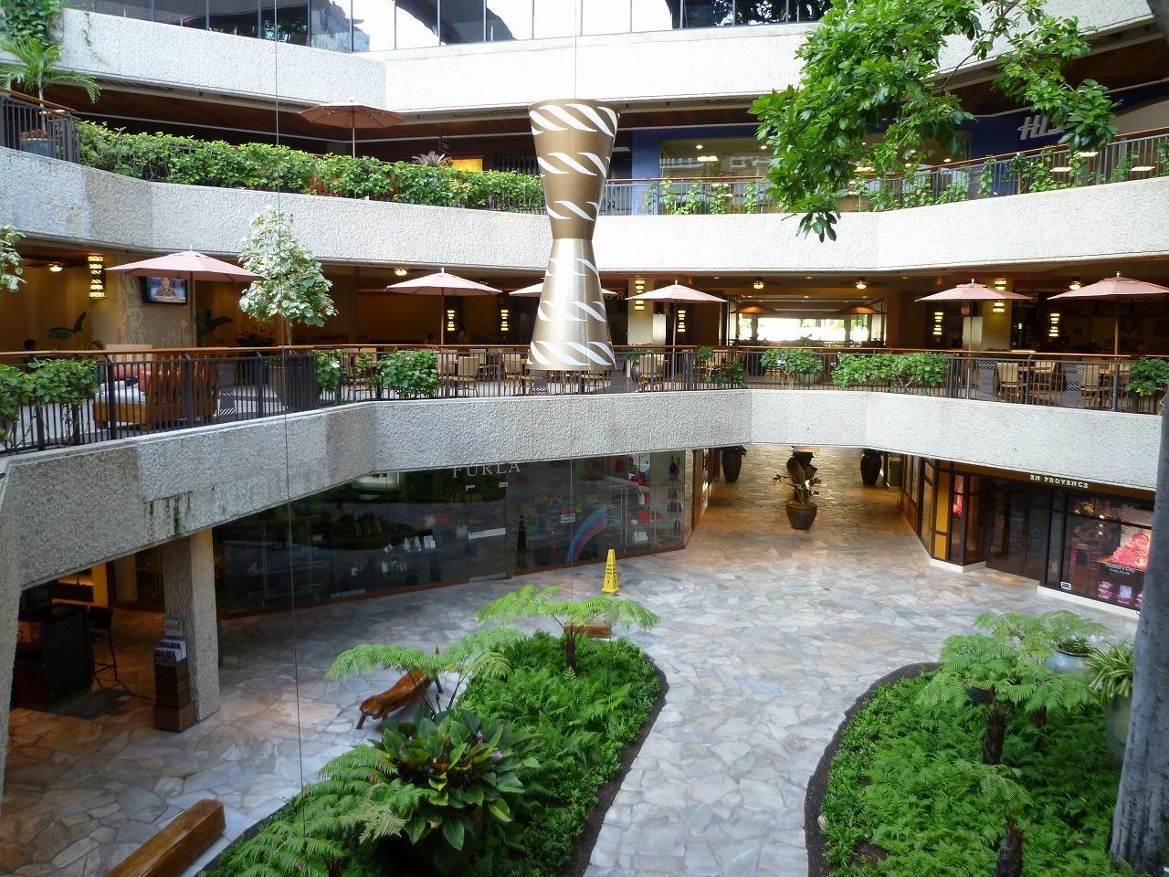 ホノルルのショッピング・モールではアラモアナ・ショッピングセンターが別格の巨大さを誇るが、ロイヤル・ハワイアン・センターも広い3ブロックに110を超すブランド店が軒を連ねる。開店後は大勢のお客さんがいて写真を撮りづらいので、店が開く前にデジカメ片手に見て回った。