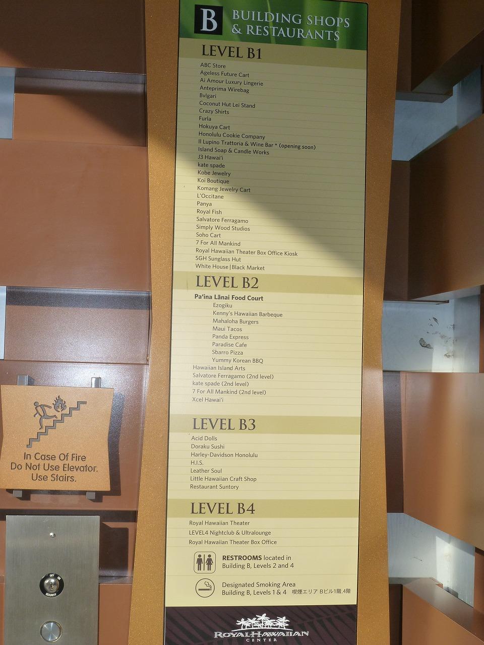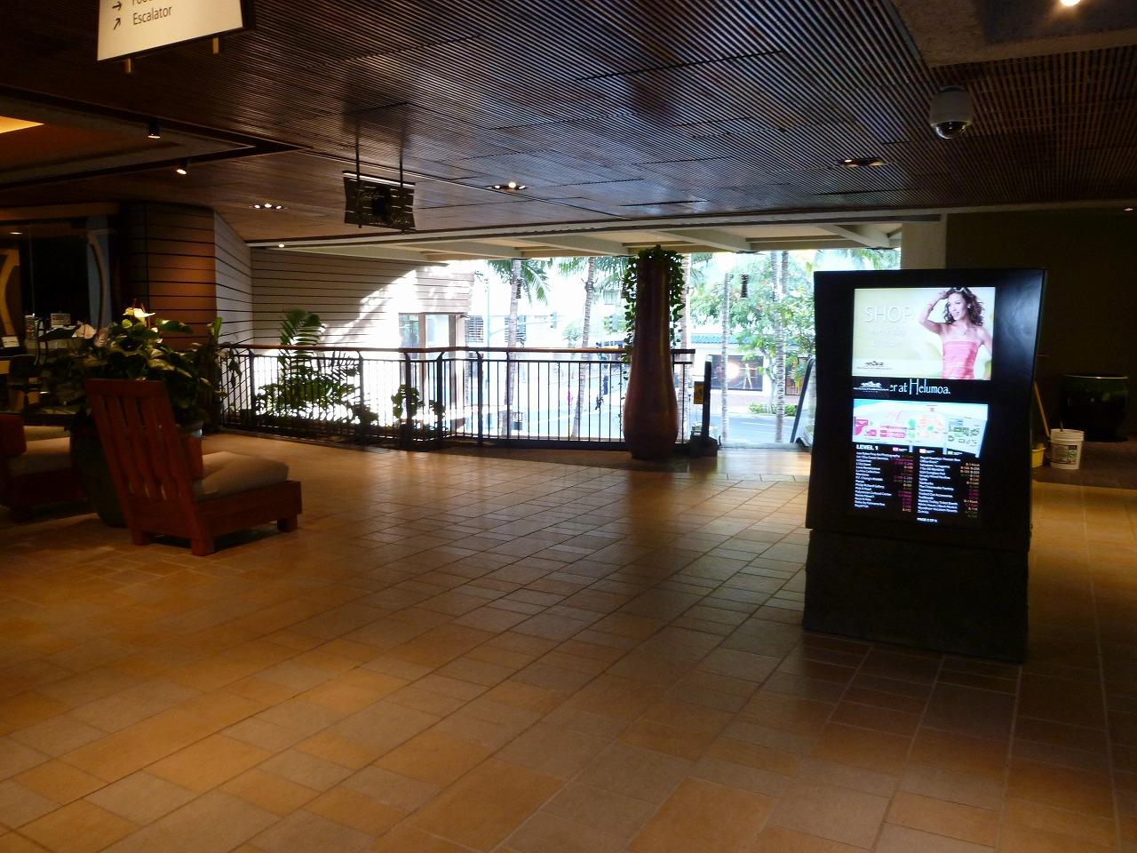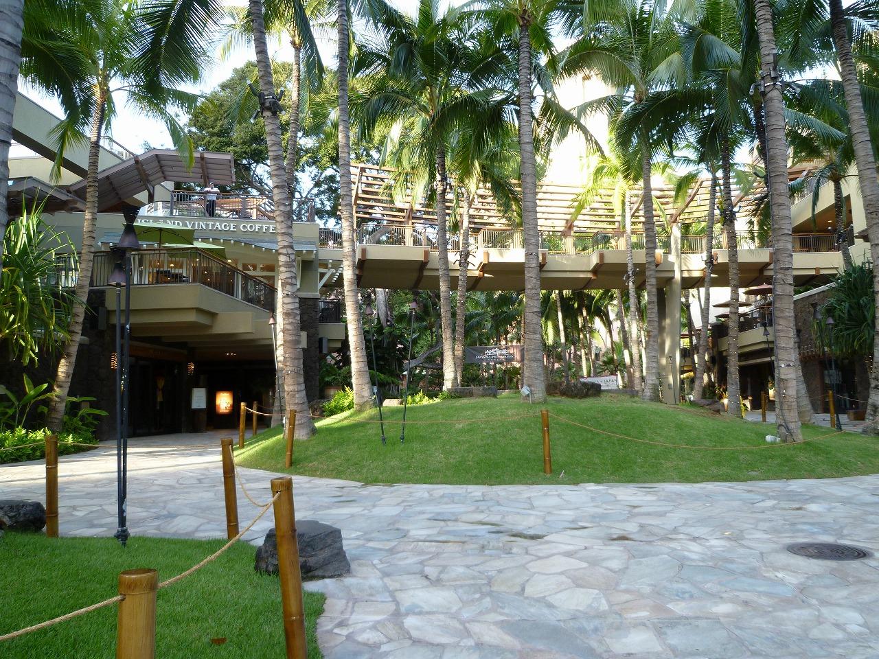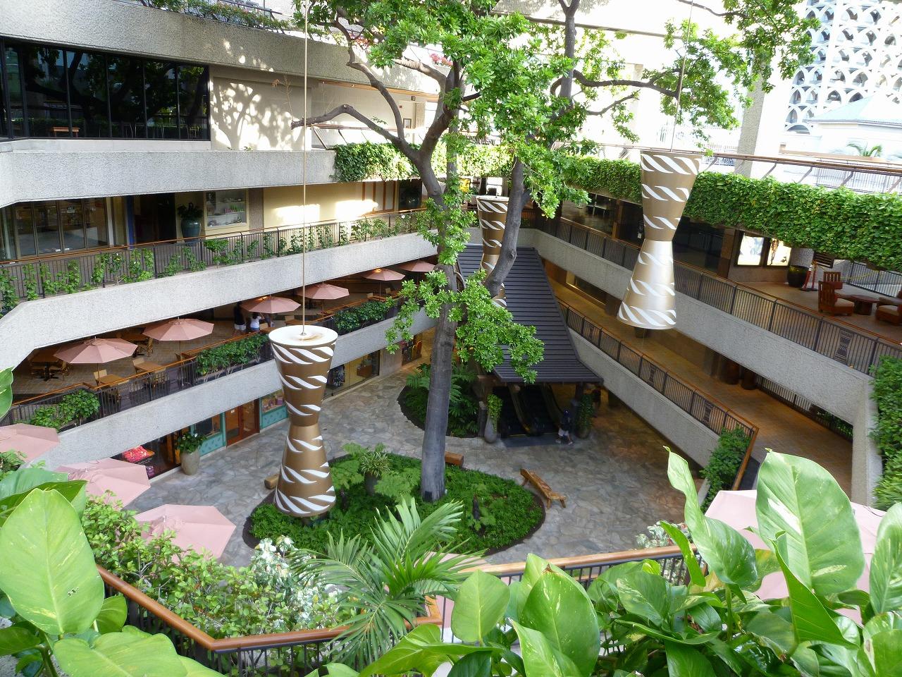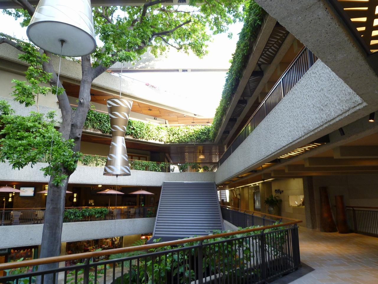 ホノルルのショッピング・モールではアラモアナ・ショッピングセンターが別格の巨大さを誇るが、ロイヤル・ハワイアン・センターも広い3ブロックに110を超すブランド店が軒を連ねる。開店後は大勢のお客さんがいて写真を撮りづらいので、店が開く前にデジカメ片手に見て回った。