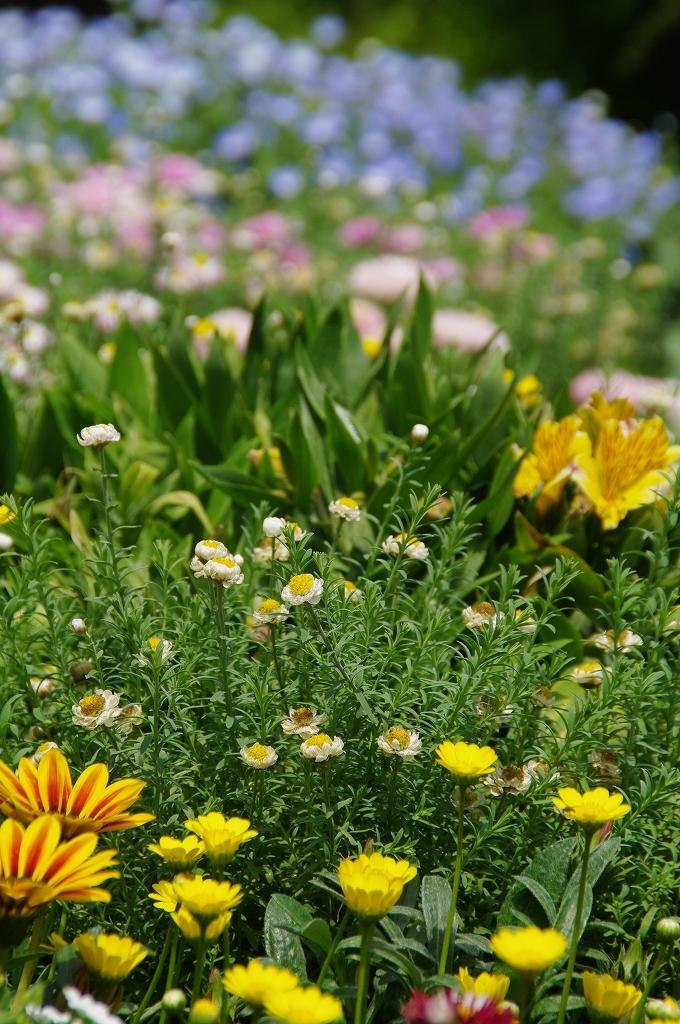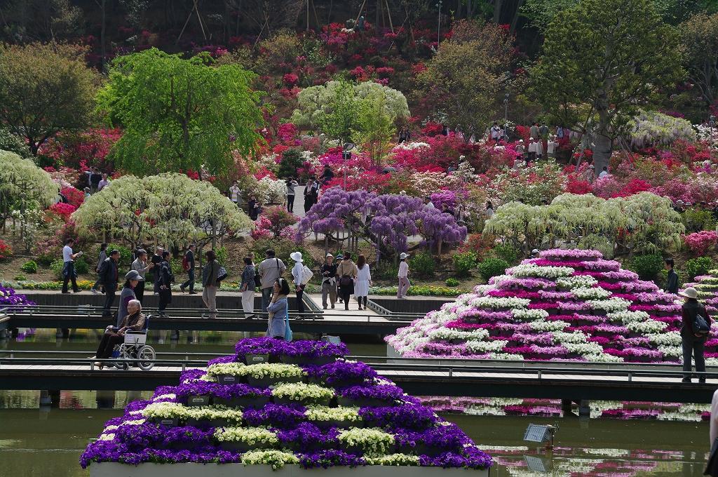 向こうに見えるのは、こちらも満開の彩とりどりのつつじ