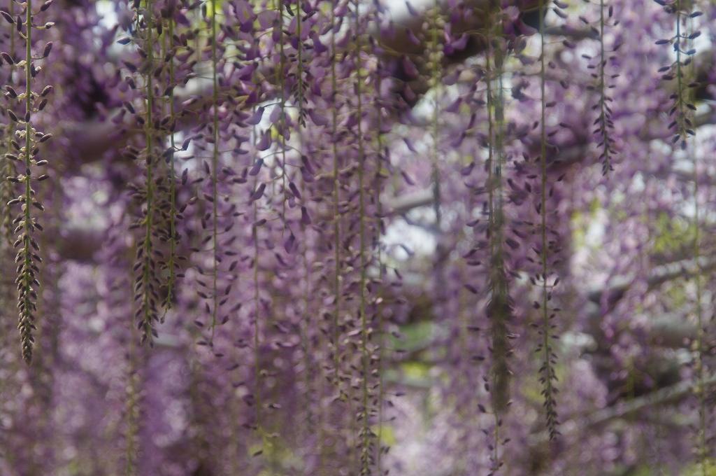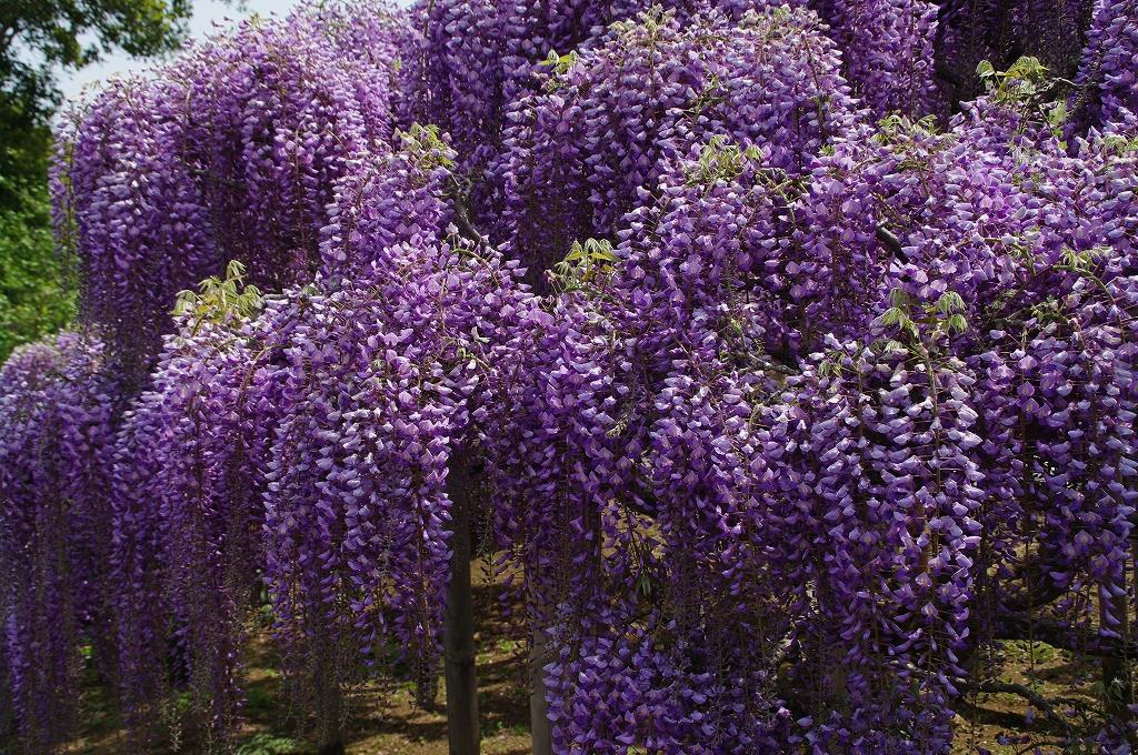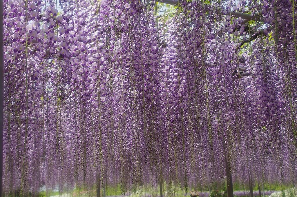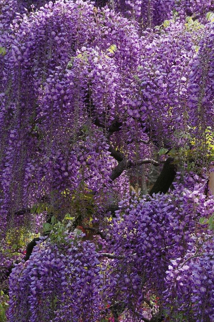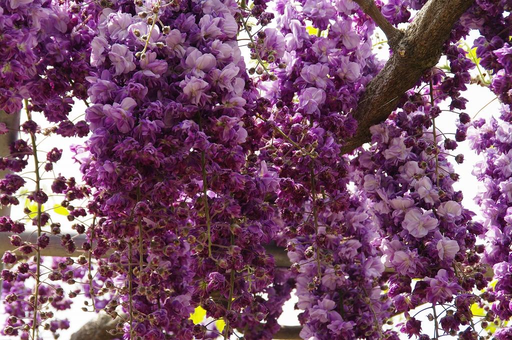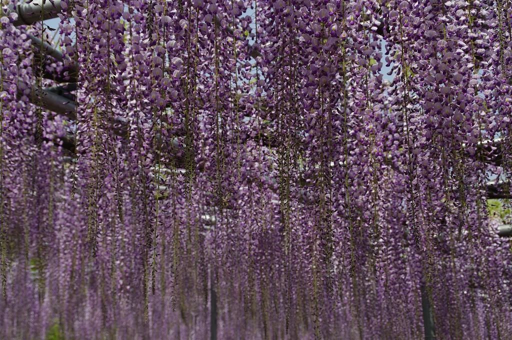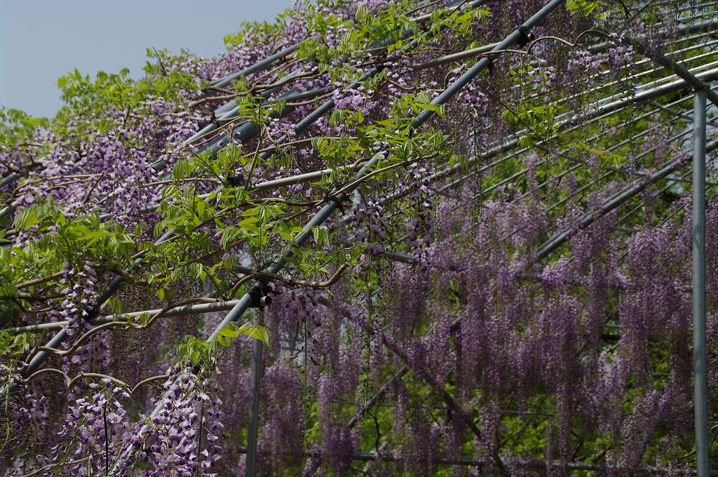 世界でも珍しい八重黒龍の藤棚です。近くに行くと普通の藤とは違ったまるで海外で漂ってくる香水のような、とっても強い香りです。 -