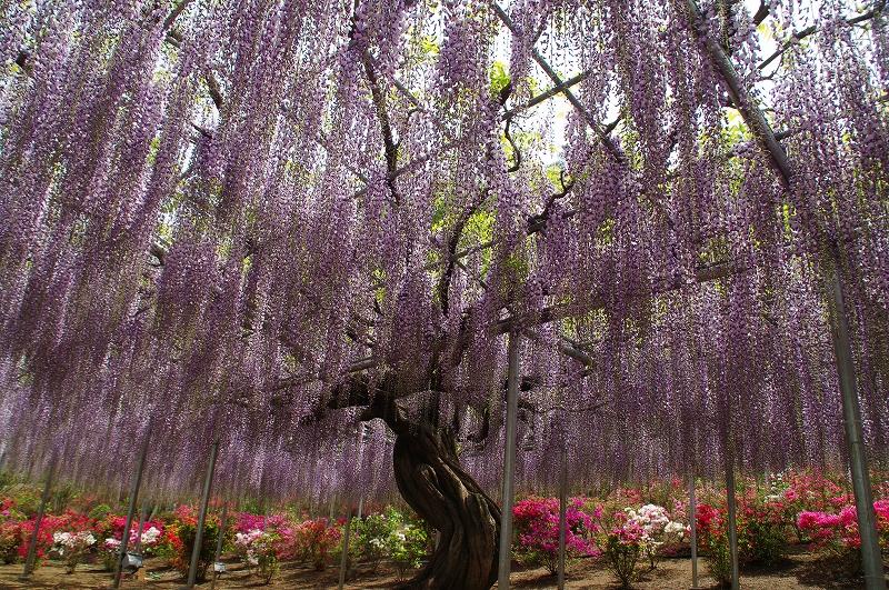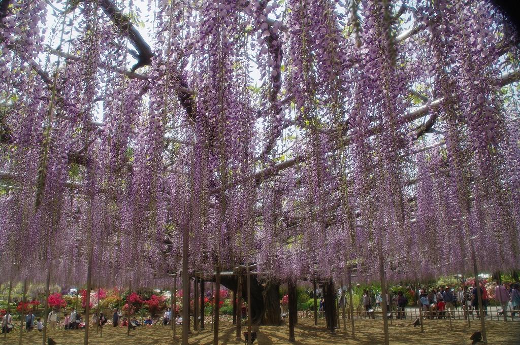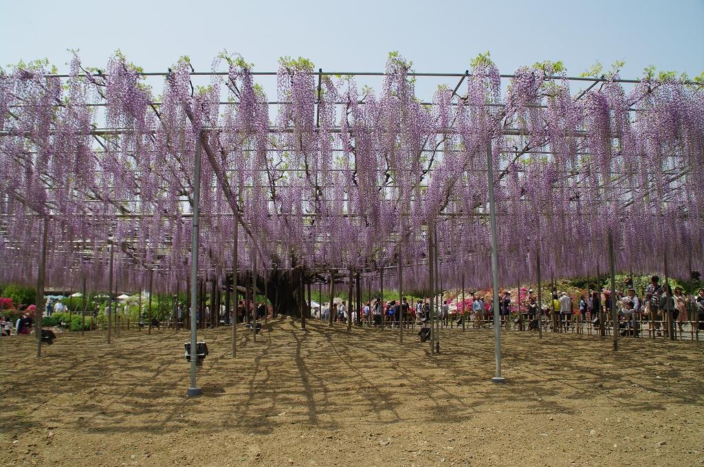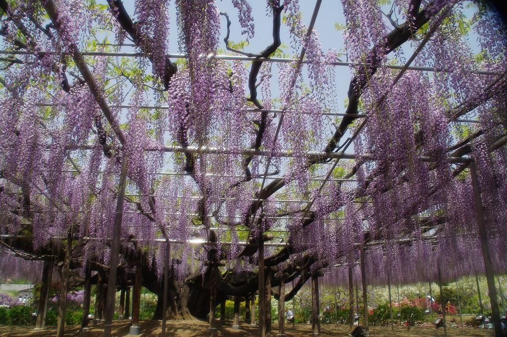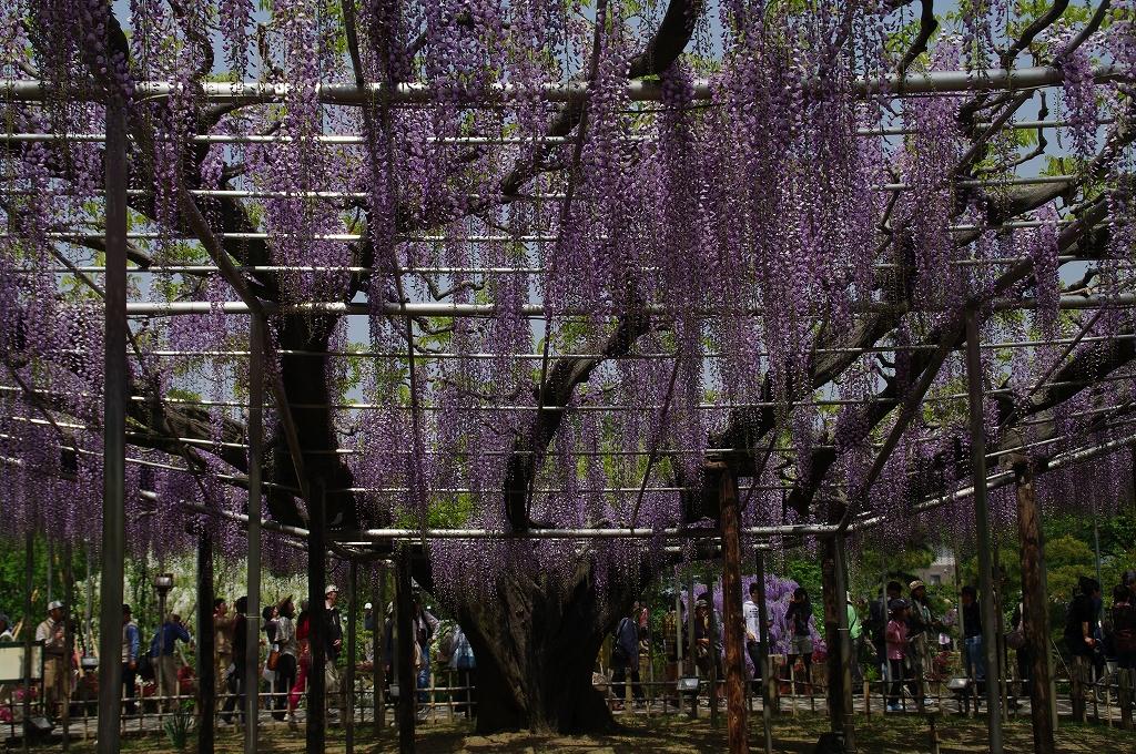 そして・・これが樹齢145年を超える600畳敷きの大藤です。2本の木の藤棚のようですが、他の藤棚と比べるとやはりでかい!!