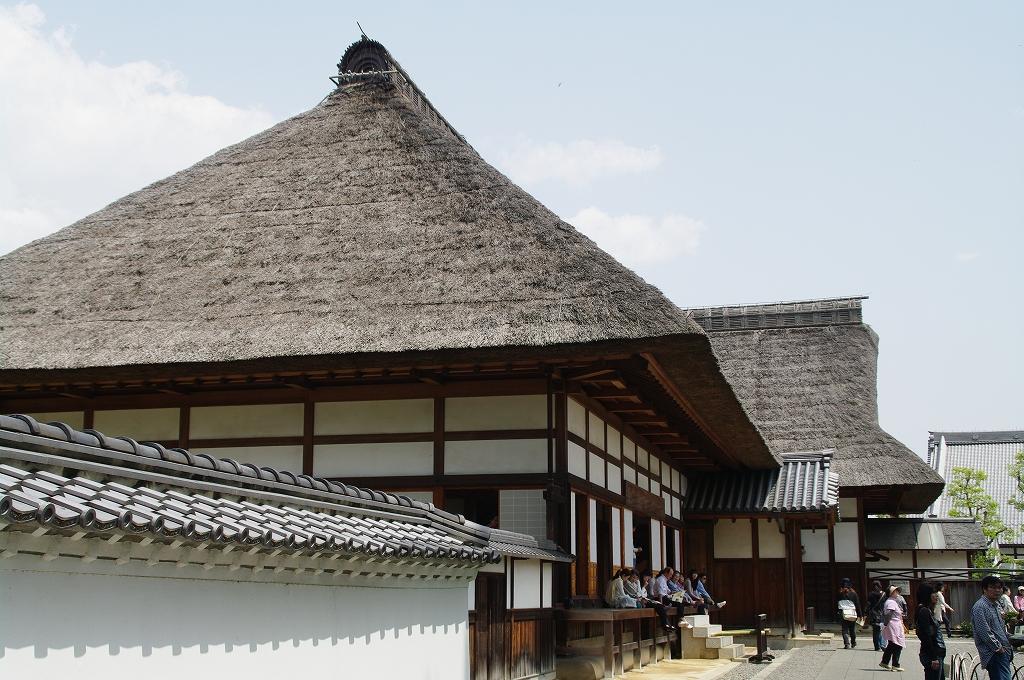 日本最古の大学で講義を受けた茅葺づくりの方丈や台所などが復元されています。