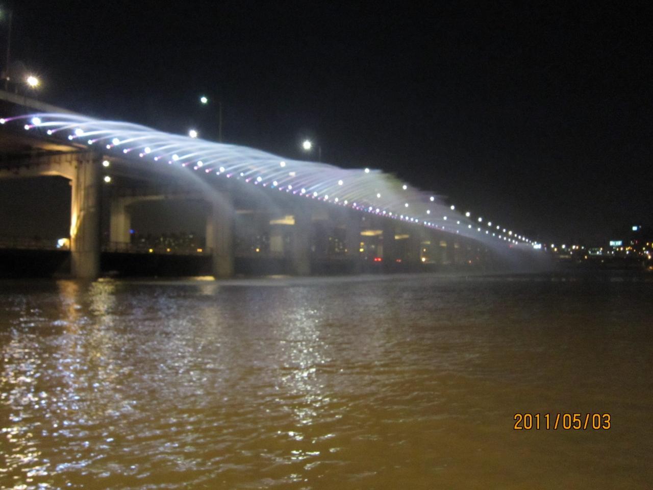 盤浦大橋のレインボー噴水を見に来ました。明洞からタクシーで7,000W位で着きました。