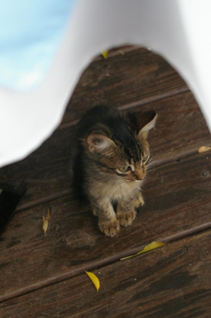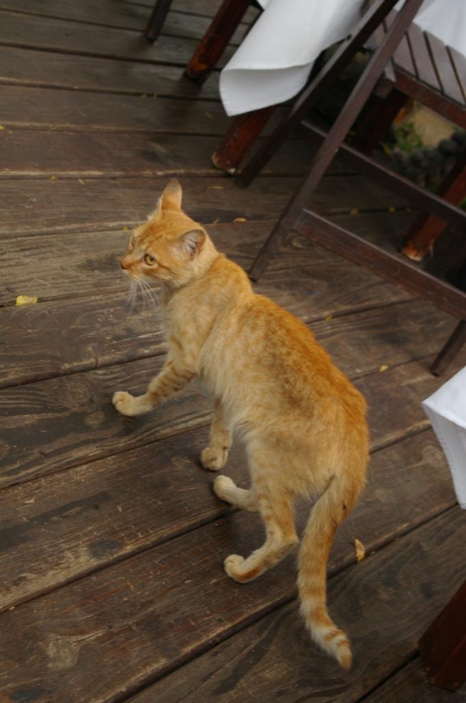 覗くと,おこぼれにあずかりに,猫ちゃんがやってきていました。 -