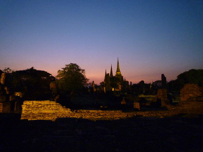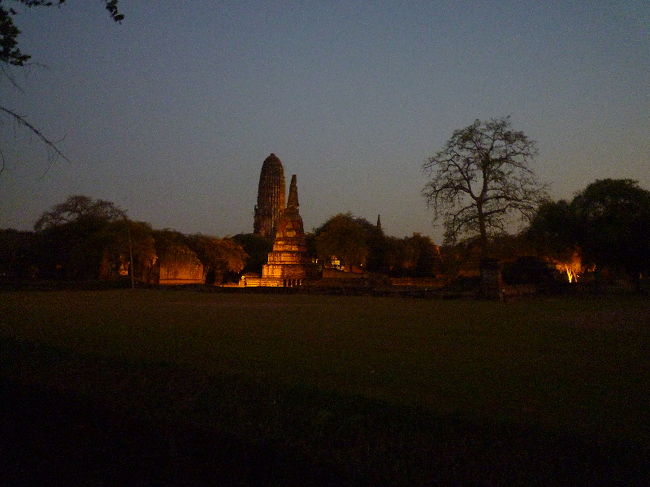 ご飯を食べてちょっと休憩、最後にライトアップされたアユタヤーを見ます。 -
