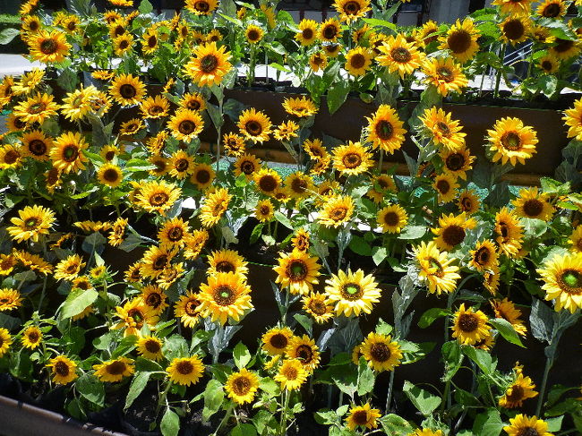 パラゴンとセンターの間はペディストリアンデッキでつながっていて、ひまわりがずらーっと並んでました!!
