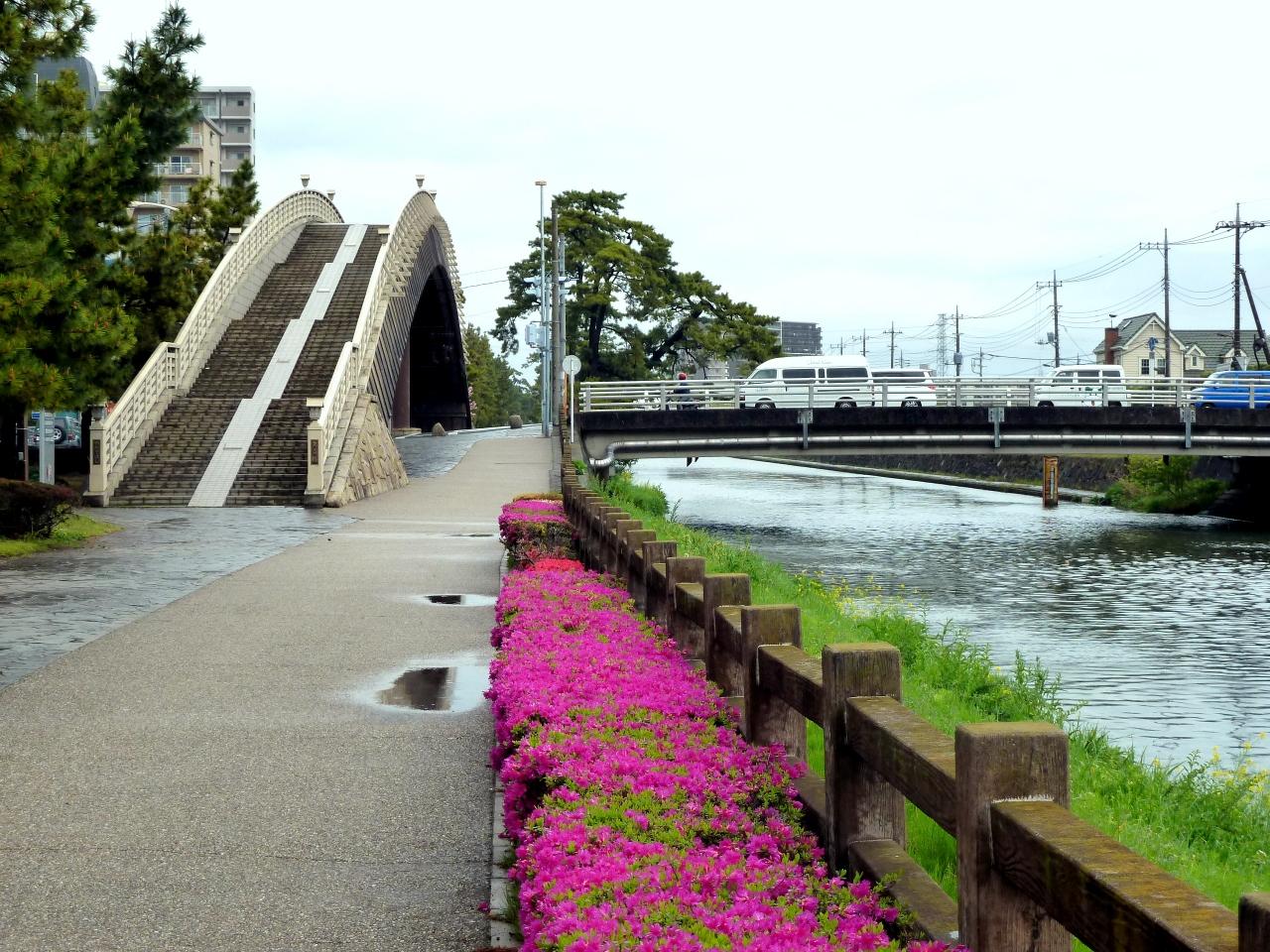 通常は川に架かっている太鼓橋が道と川に並行した立っている様に驚かされる。