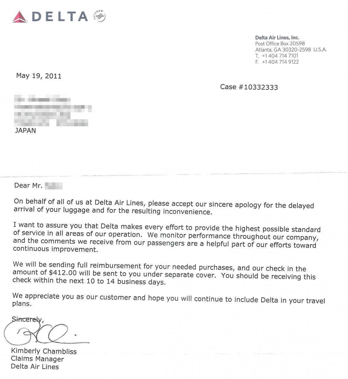 2週間経た本日(5/26)、クレームレター返答が国際郵便によりありました。