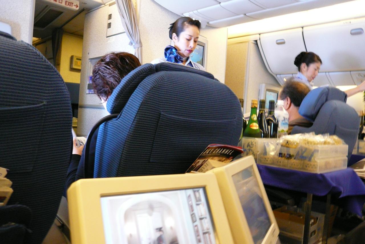 日本に大分近づいてきてアイスクリームが配られました。皆寝ている人が多いのでもらっている人は少なめでした。