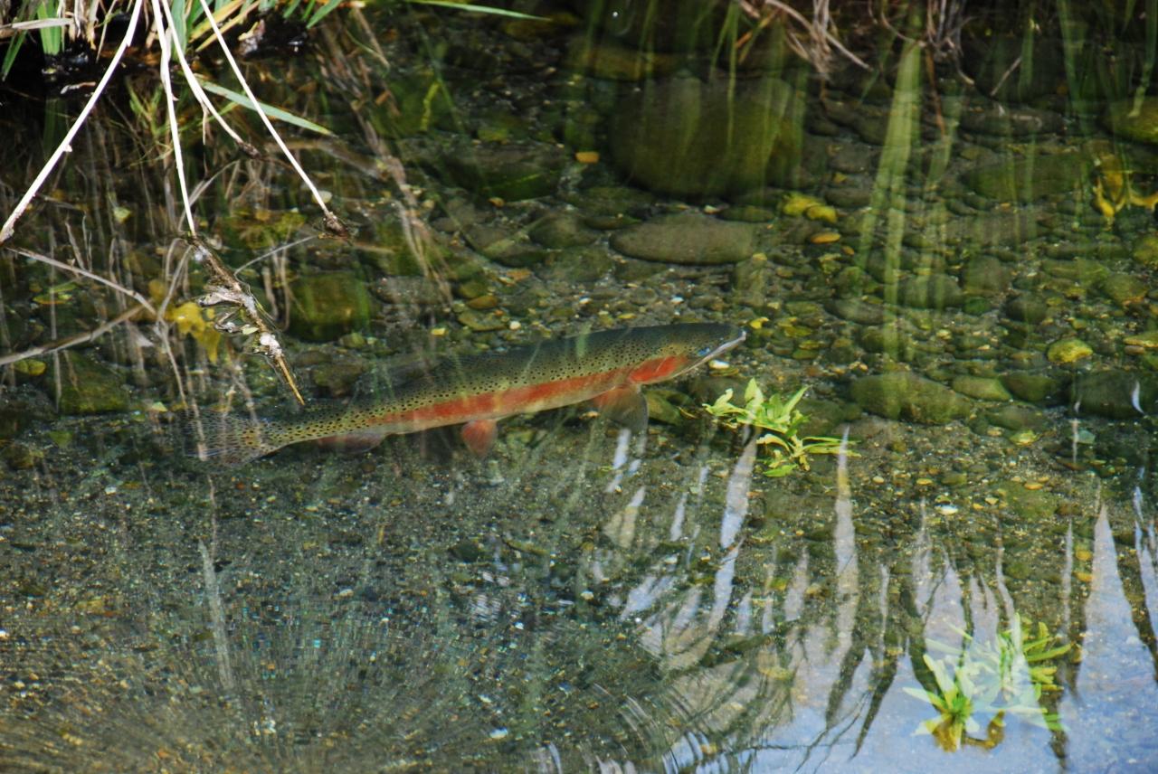 憩いの池では、鯉やニジマスが泳いてました。