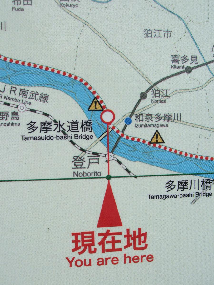 現在地は、狛江市の多摩水道橋です。