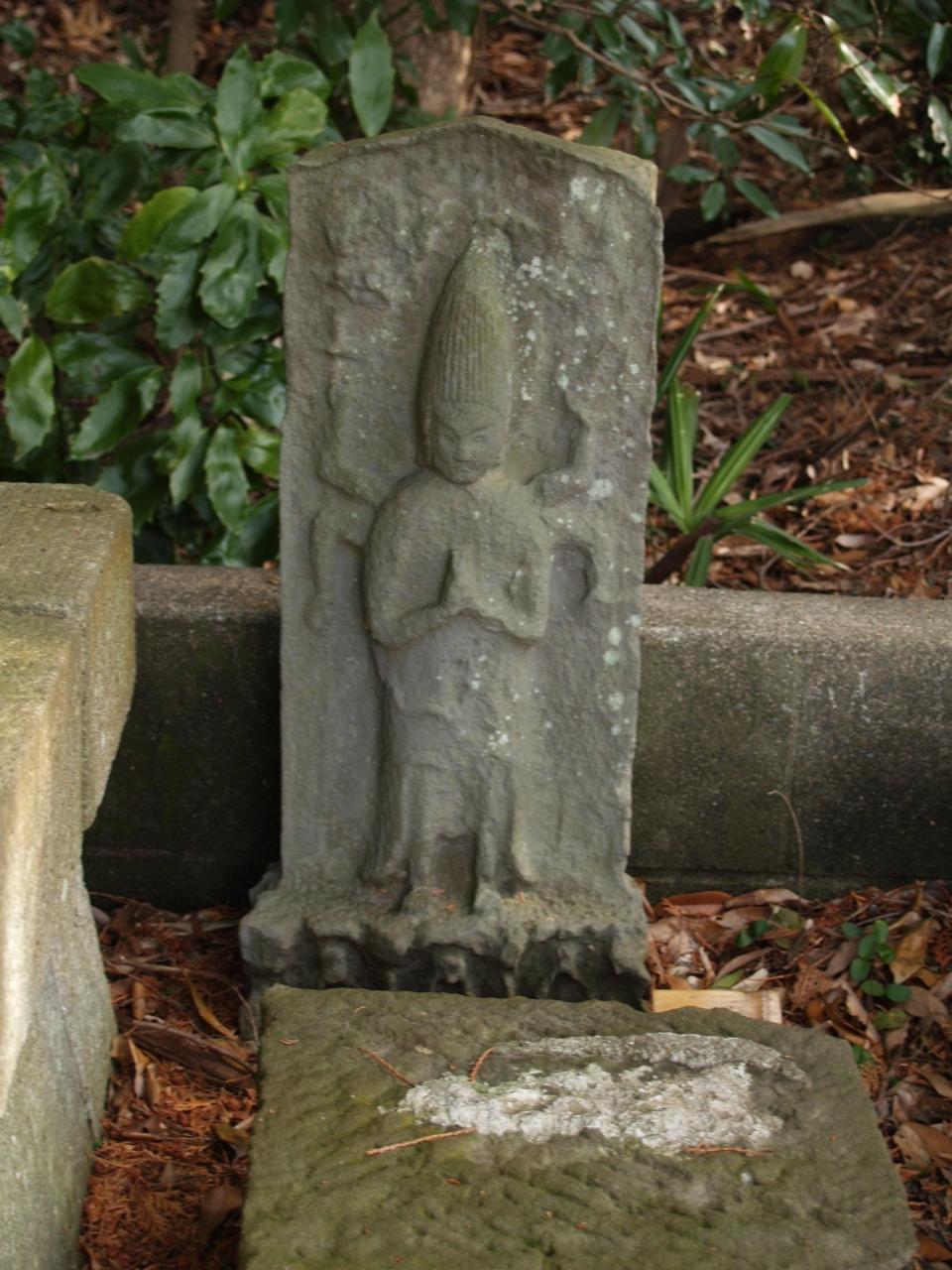 春日神社旧別当寺龍光寺跡地(小菅ヶ谷3)の墓地の石仏(宝永4年(1708年)銘)。