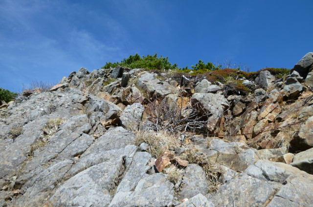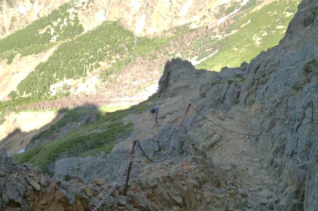 下の赤岳の影の先に、鎖場の道を見つけてホッ。