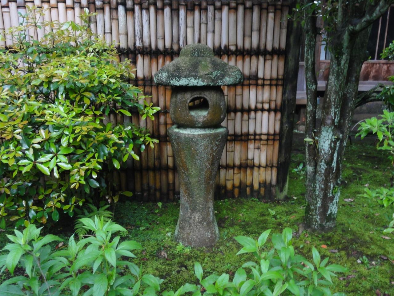 千利休が刺客に襲われたとき、身体をかわしたので流れた刀が当たった身代りの灯籠であるといわれています。 -