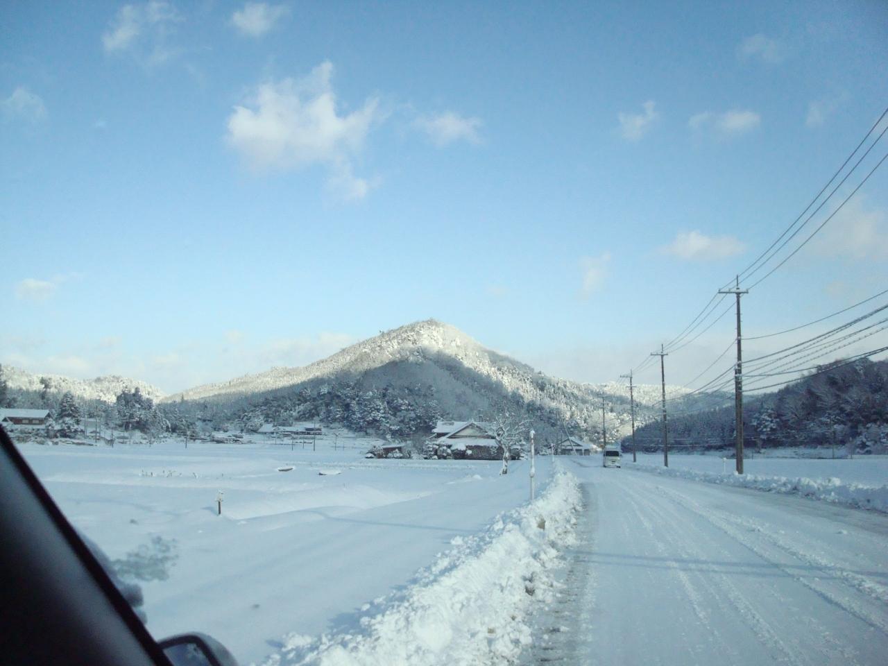 家を出る時から積雪がありました。が、一山超えると量が増える。まだ家から20分ぐらいしか走ってないのにこの積雪。