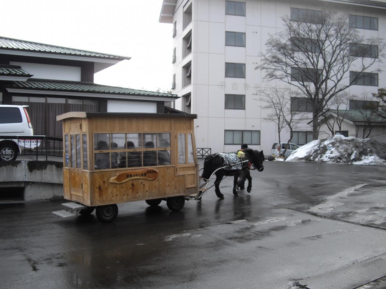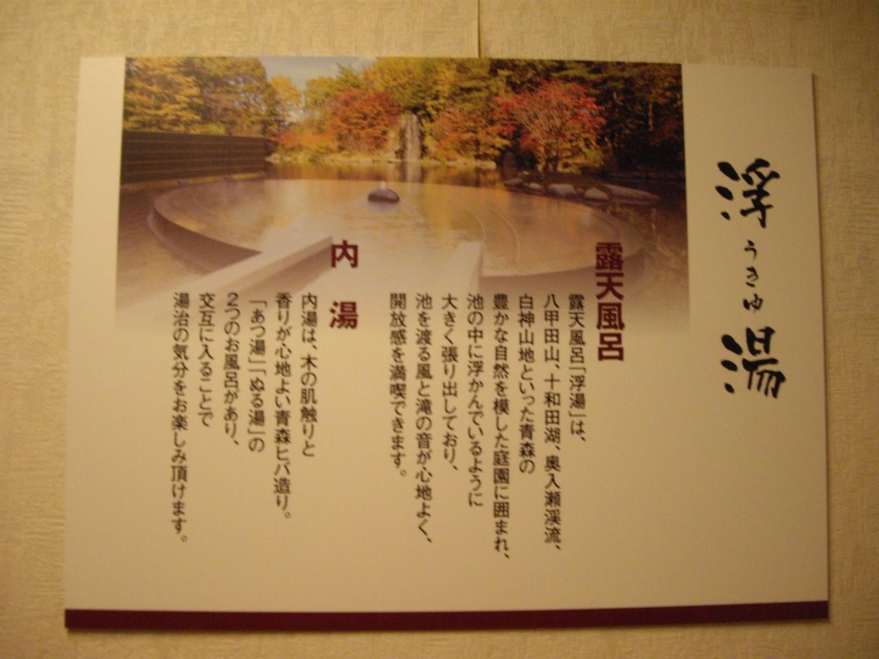 雪遊びを楽しみに横浜から来たが、八戸、三沢は青森県でも太平洋側は雪が少ないとのこと、それでも敷地内は広く、雪遊びが出来、満足していた様子。露天風呂はうわさ通りで大きな池と一体になっていた。源泉の古湯も趣があった。