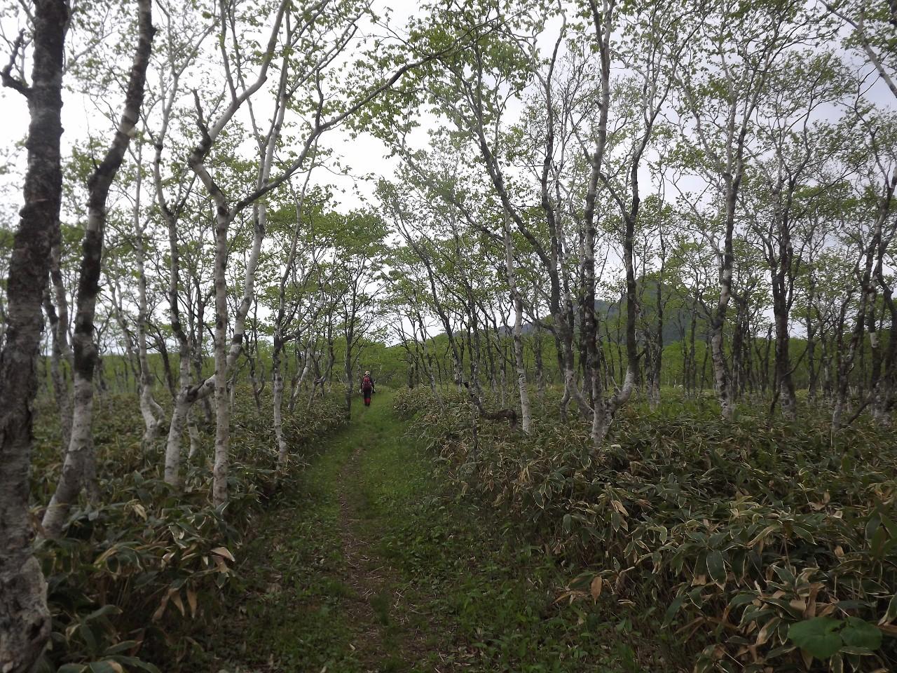 がまん坂を登りきるとダケカンバの尾根に