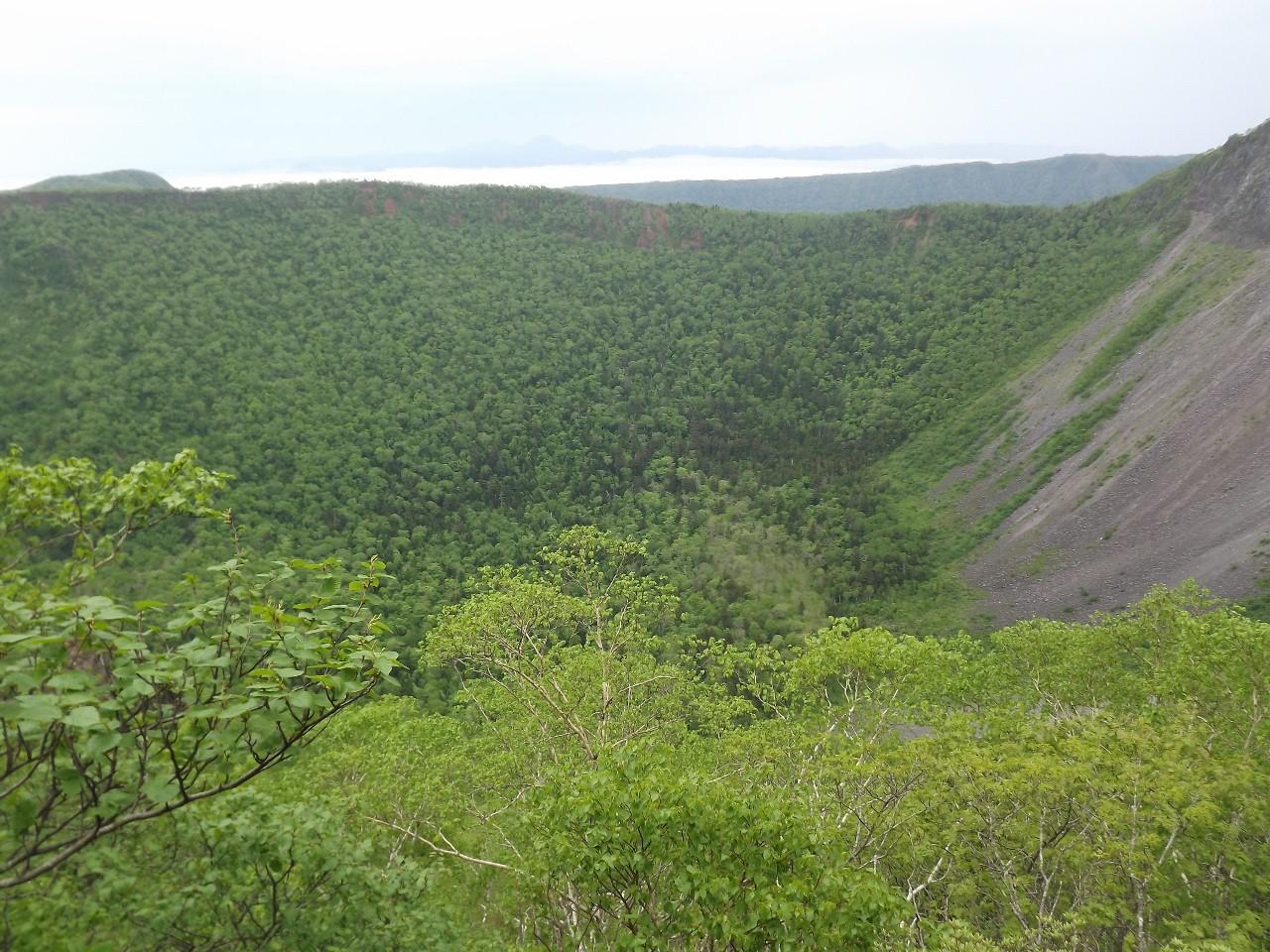 摩周湖の爆裂火口の中はご覧の通り、意外に豊かな森になっています