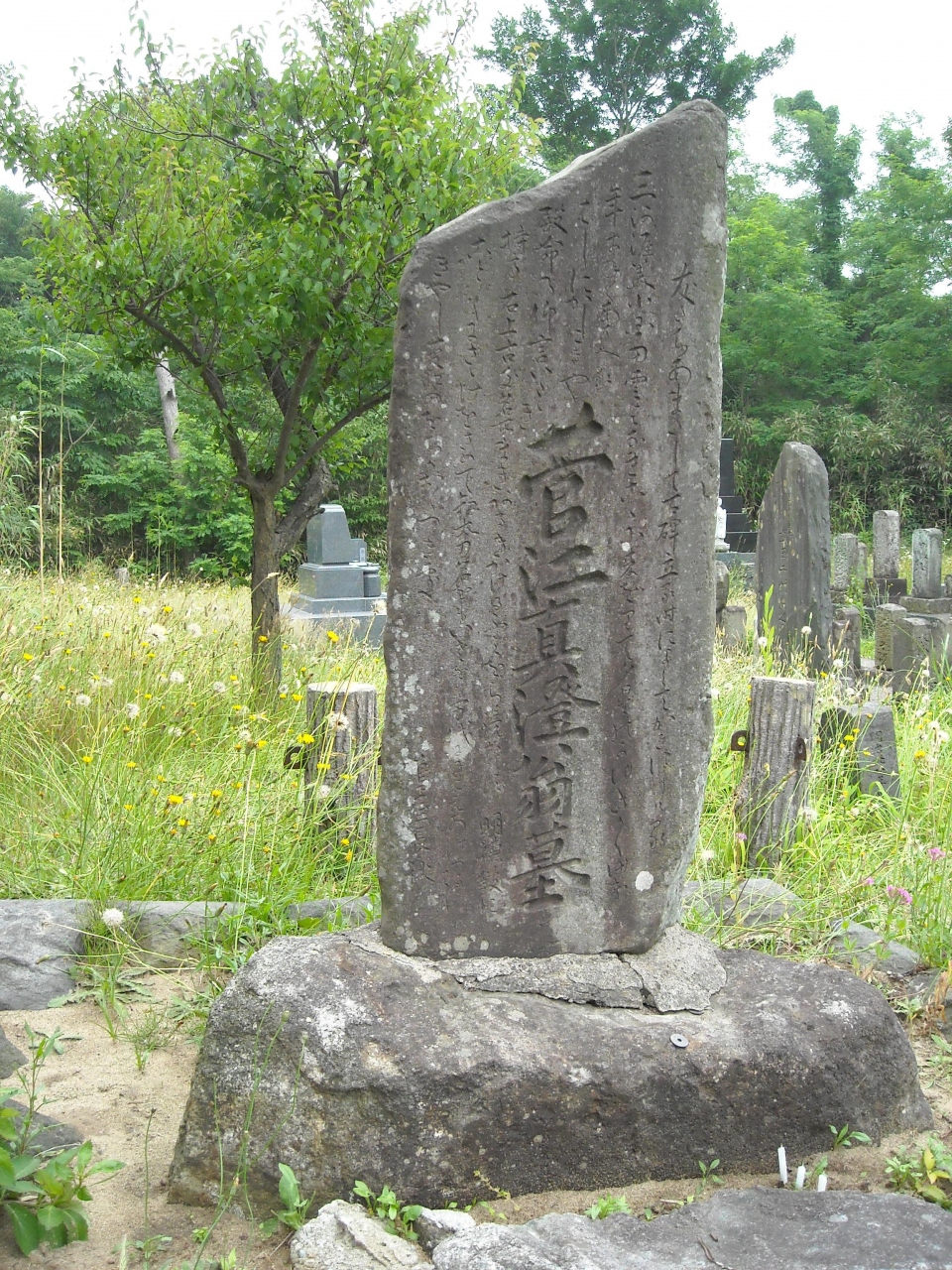 弟子の鳥屋長秋による万葉長歌風の墓碑銘が刻まれた墓は装飾もなく、旅に生きた故郷喪失者にふさわしい。