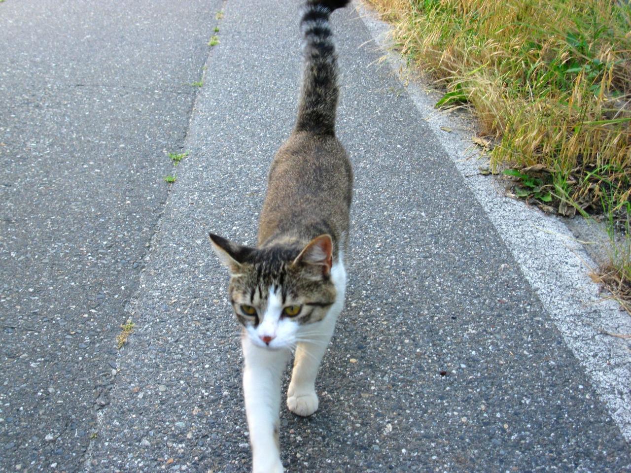 近づいてきた・・というコトは道をよけてくれたのですが、猫を飼っていないから、よくわからないんだけど、シッポが立っているのは、どういう感情?