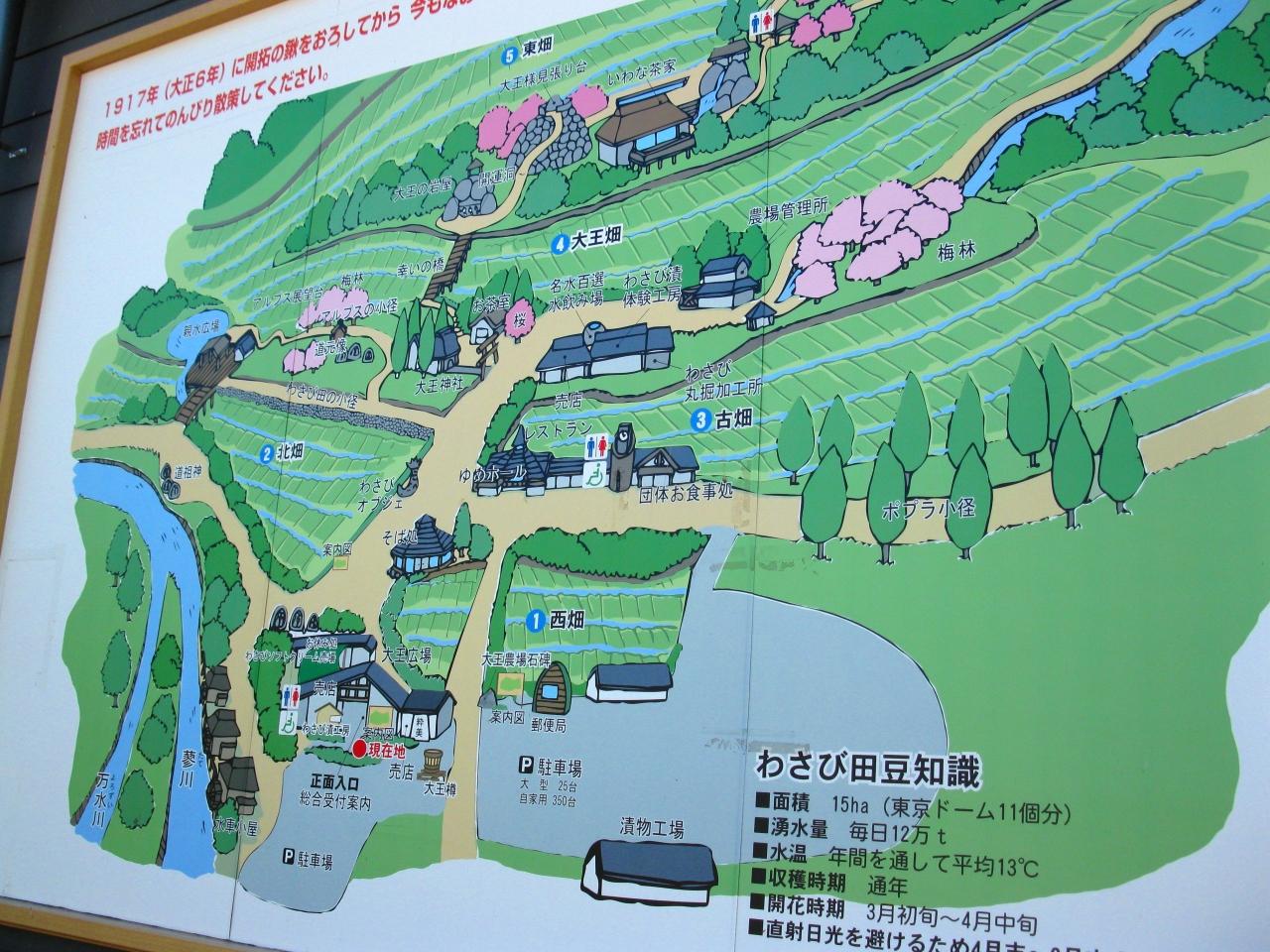 一面のわさび田なんですが、開園時間少し過ぎたばかりで、人が少ないこの時間、チャンスと思って、まずは、お目当ての景色の所へ。 -