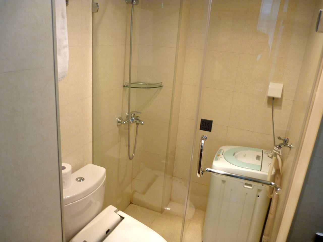 シャワールーム内の洗濯機は、狭さゆえに、自分と一緒に洗う?こと(泡だらけ)になります。