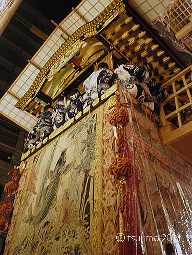 四条通りには、長刀鉾、函谷鉾や月鉾など巨大な鉾があります。 -