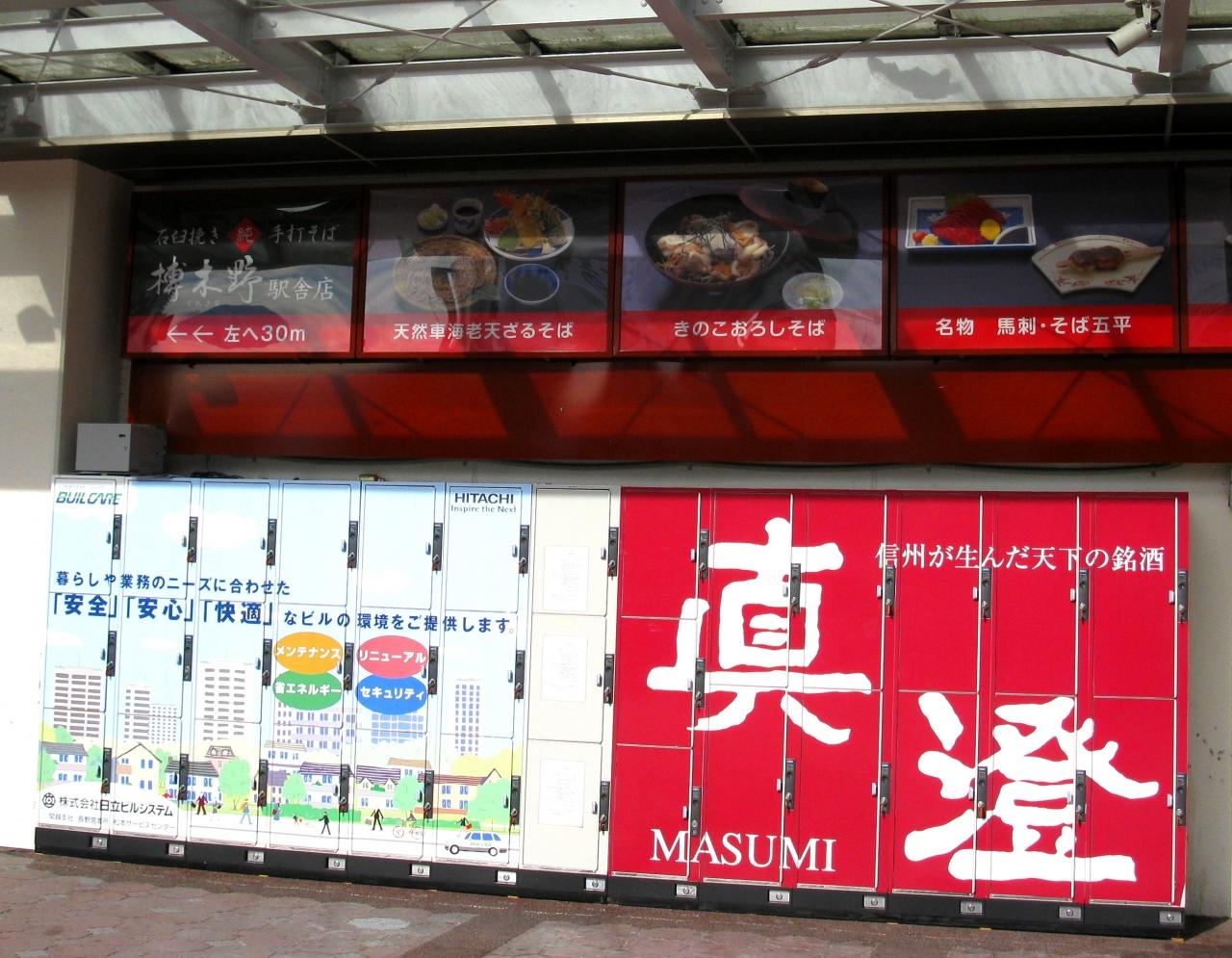 うん?駅のコインロッカーには大きく「眞澄」のデザイン -