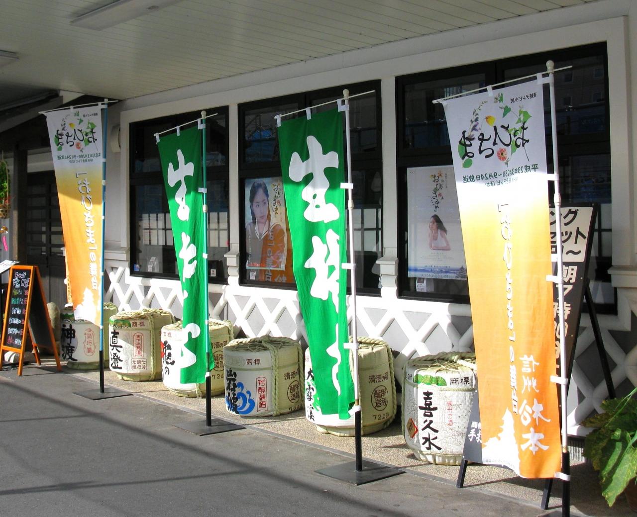 駅前に立ち、頭を360度回転させて景色を見ると、酒屋さんがちらほら。写真右側をアップすると・・。
