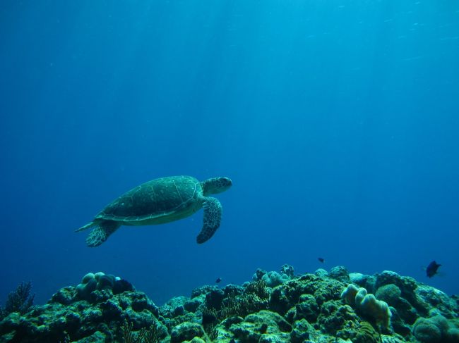 光のシャワーとアオウミガメ。