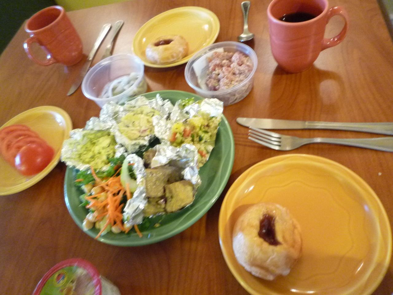本日は部屋に備え付けの電気釜で五穀米を炊きおにぎりを作りました。アラモアナセンターのフードランドでお気に入りのスパイシーアヒとサラダを購入して夕食。
