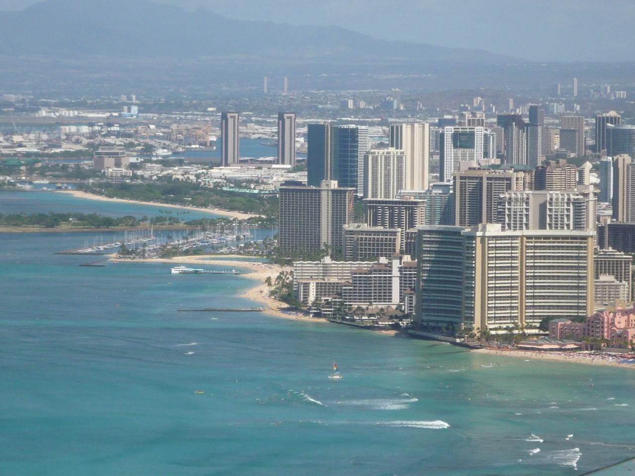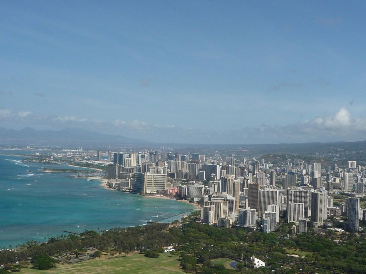 ダイヤモンドヘッドの頂上からみたワイキキ