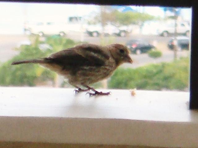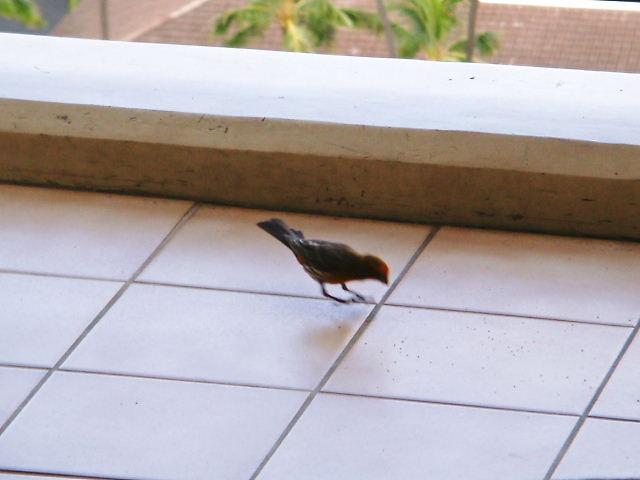 ホテルのラナイにブラジリアンカーディナル(?)が餌を求めて。
