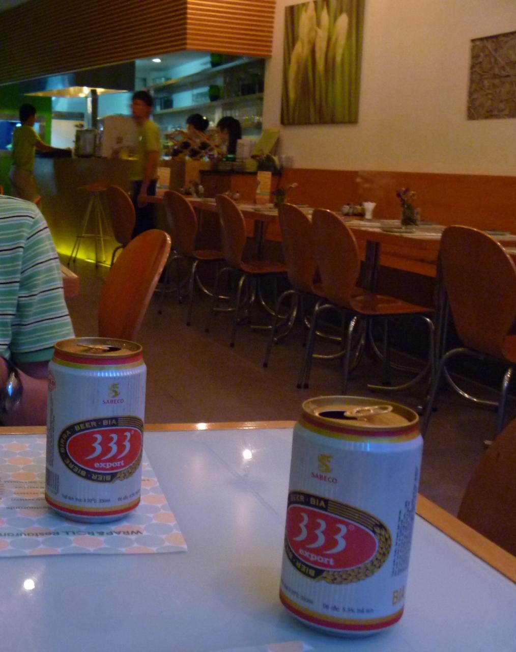 缶ビール3本とお料理で、35万ドンでした -