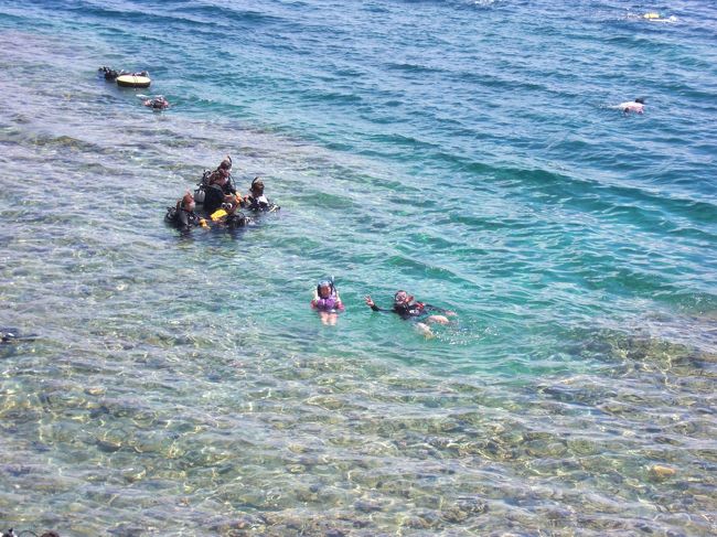浅瀬ではダイビングのツアーの方々が練習をしています。