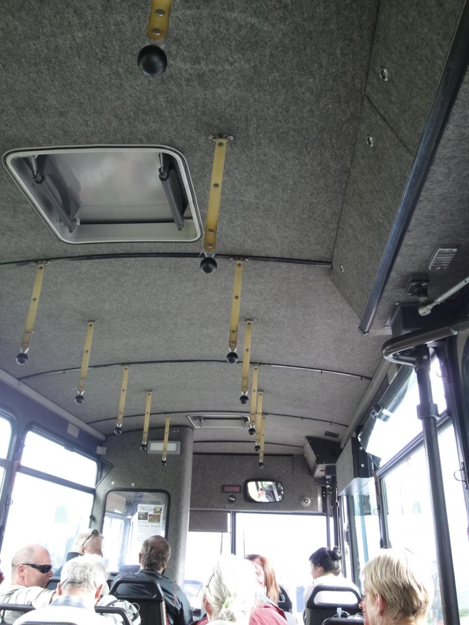 Grindelwald行きのバスに乗車しました。歩かなくても移動できる有難さが身にしみます。 ふと上を見ると、面白い形の吊り皮がぶら下がっています。ちょっと掴みにくそうな気もするけど…どうなんでしょうか。