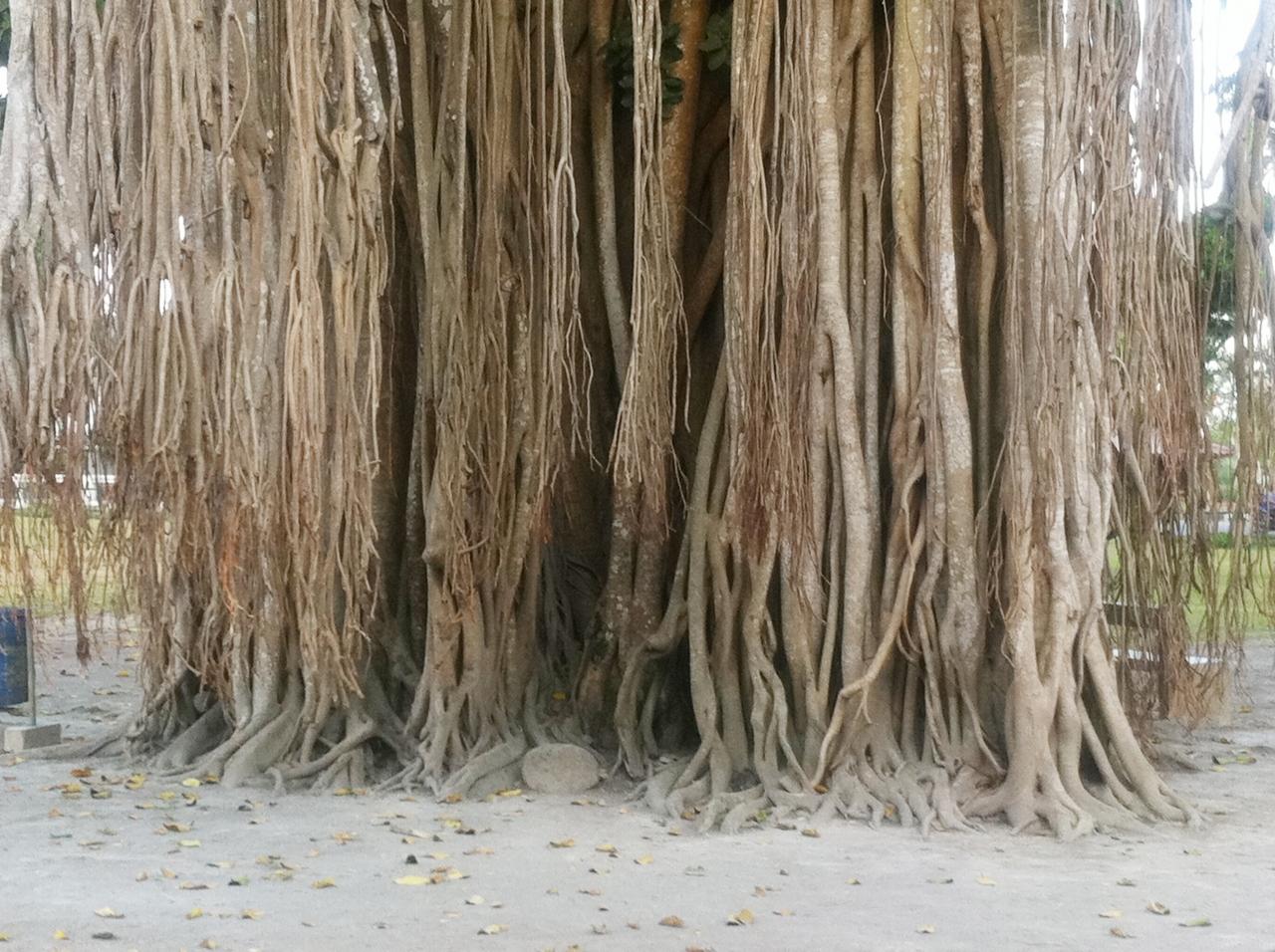 寺院のすぐそばにある、大きなガジュマルの樹。