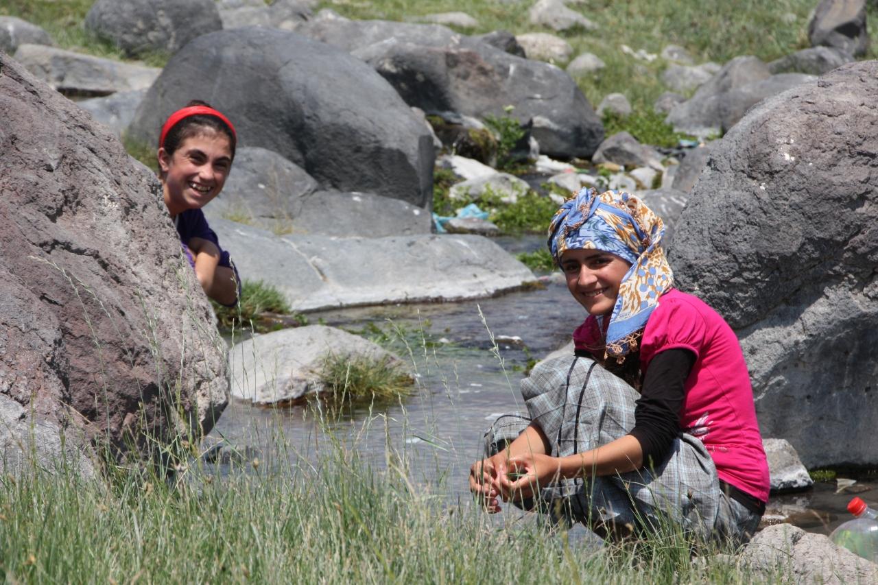 写真はメンバー6人が登頂したトルコ最高峰「アララト山」5,137mをバックに現地の美しいお嬢様達・・・