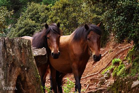 前から馬が歩いてきた。 -