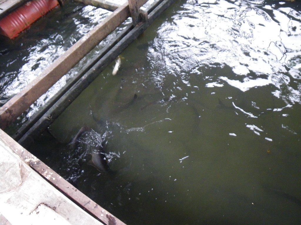 湖で獲れる魚が飼われている。