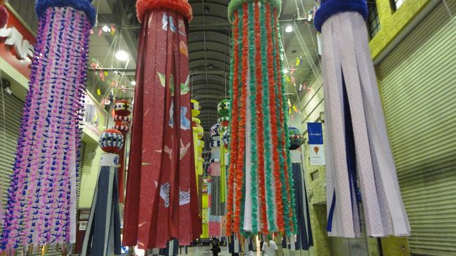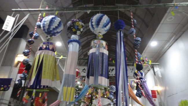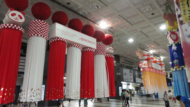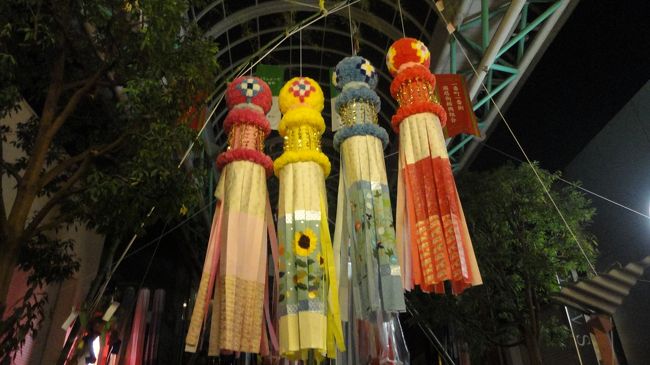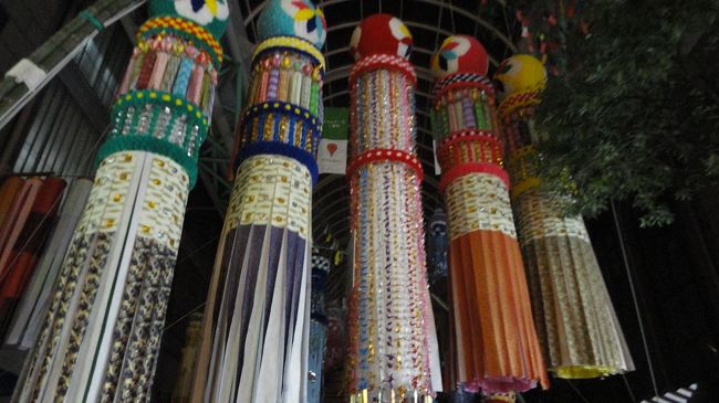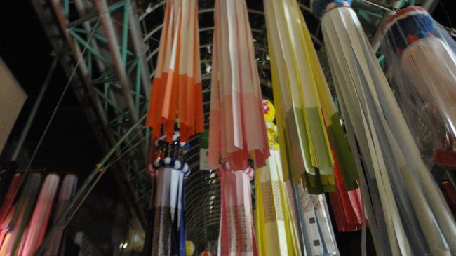 山形の花笠まつりを見た後、泊まるか夜行バスに乗るか迷い、とりあえず仙台へ移動しました。ここでも渋滞し、仙台到着は夜10時半頃。七夕祭りを見ましたが、夜は大半の七夕が片付けられて丸まっていました。いくつかの七夕は綺麗に飾られていて見ごたえがありました。